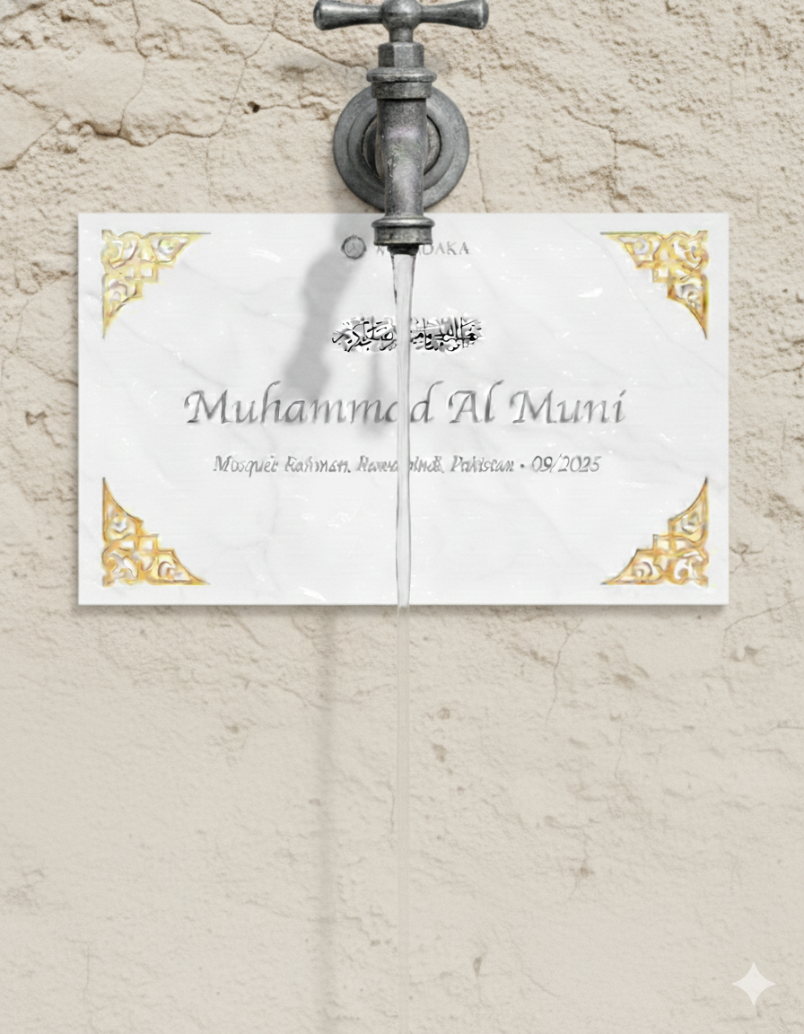 Elke dag verrichten gelovigen hun wassing voor het gebed. In veel moskeeën ontbreken de voorzieningen of zijn ze verouderd. Dankzij uw sadaqa wordt er een wassingplaats gebouwd op naam van uw dierbare — een duurzame daad die bij elk gebruik blijft voortduren.